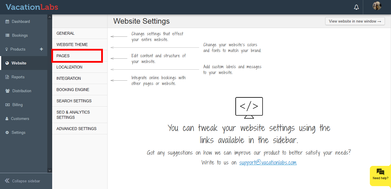 Your Vacation Labs website builder subscription includes a minimum of 45 pages. Beyond the standard pages, you can add more pages to expand your website and publish additional content. To add a new page, log in to your Vacation Labs account and open ...