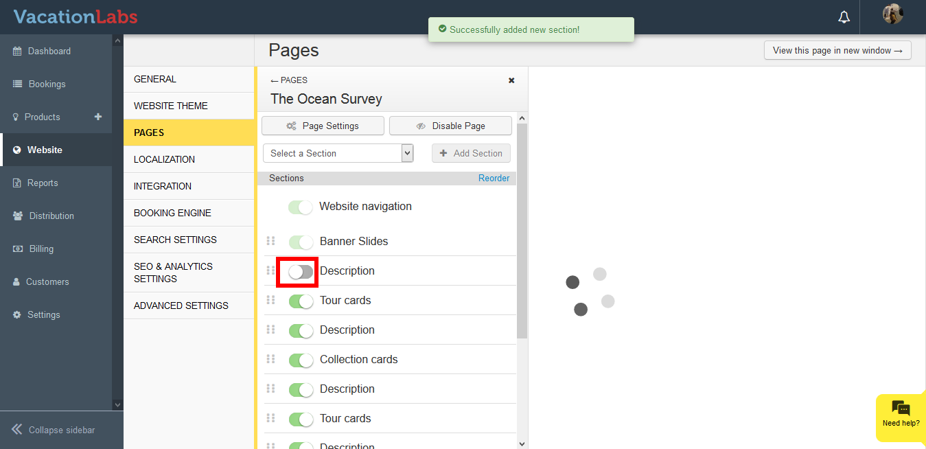 - Click on the Toggle button to activate the section