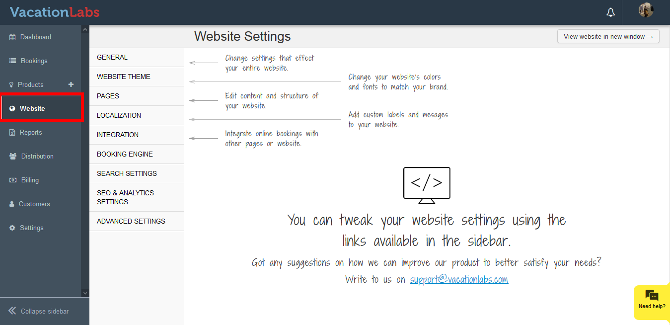 Vacation Labs allows you to have a multilingual website so that Website Language is never a limiting point to your visitors. Most of the customers prefer to view their website in their own language. You can have two types of translation on your ...