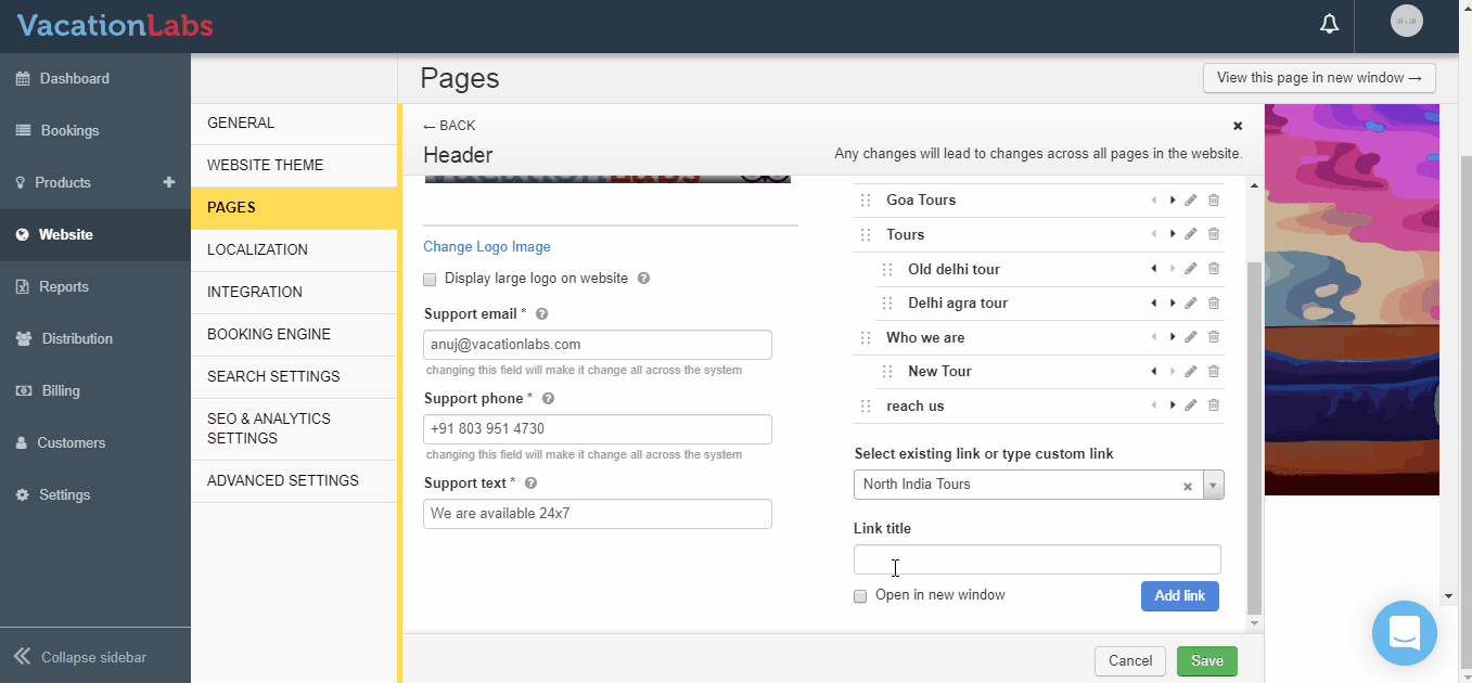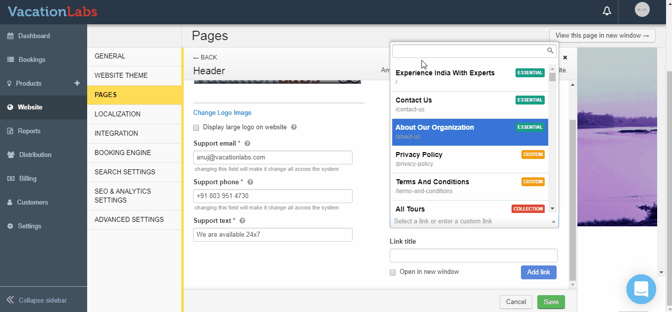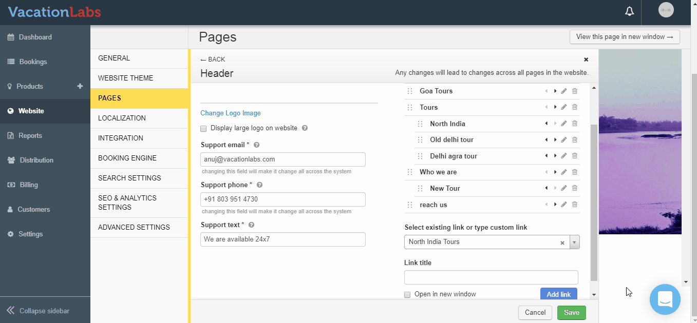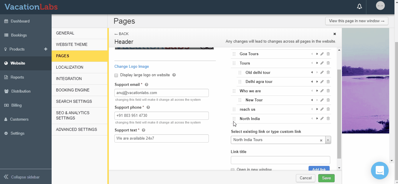 You can update the support phone number(s) displayed on your website directly from your Vacation Labs account. Steps to Update or Add Phone Numbers Log in to your Vacation Labs account. Use your registered email and password to sign in. Navigate to ...
