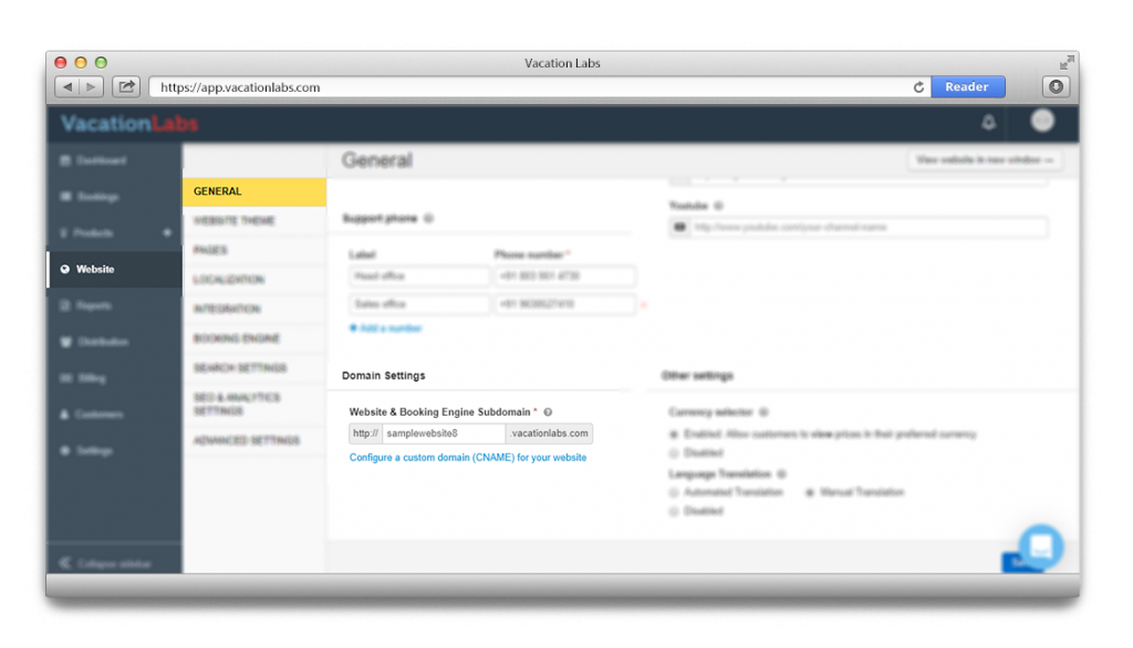 - Once you have added the required DNS records, login to your Vacation Labs account and go to WEBSITE > GENERAL
